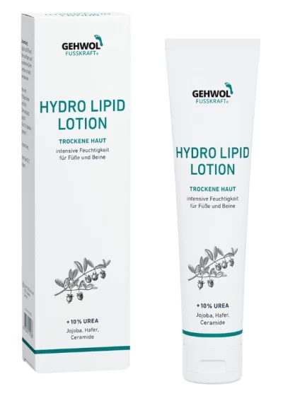 GEHWOL HIDROLIPIDNI LOSION lako je razmaziv i služi za svakodnevnu njegu suhe kože stopala i nogu. Brzo se apsorbira i kompenzira nedostatak lipida i vlage, te dovodi prirodnu zaštitnu funkciju kože u ravnotežu. Sastojci urea i glicerin vežu vlagu u dubljim slojevima kože. Ulje avokada i ulje jojobe vraćaju lipide koji nedostaju suhoj koži. Ceramidi jačaju barijerni sloj i štite kožu od isušivanja. Smanjuje se prekomjerna desquamacija ( ljuštenje ) kože. Svakodnevnom upotrebom GEHWOL HIDROLIPIDNOG LOSION štitite se od neugodnog mirisa stopala ,atletskog stopala i gljivičnih oboljenja